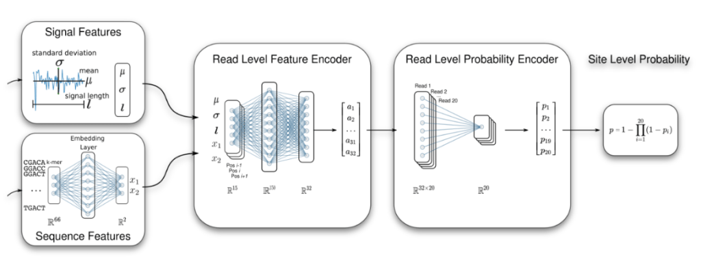 The ability to profile native RNA using nanopore direct RNA-Seq enables the identification of RNA modifications such as m6A from the raw current signal data (Wan et al (2022) Trends in Genetics, see awesome-nanopore). We have developed computational methods that can identify modified bases using either a case-control design (xPore, Nature Biotechnology (2021)), or a supervised approach (m6Anet, Nature Methods (2022)). These methods can accurately identify m6A modifications, they quantify the fraction of modified reads, and they can be used to identify modified bases for individual RNA molecules.